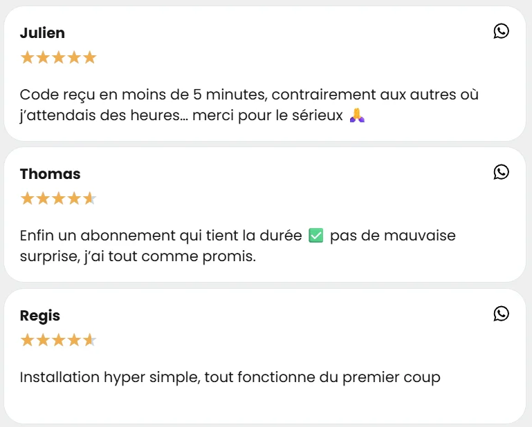 Après avoir effectué le paiement de votre abonnement , nous vous enverrons un e-mail d’installation avec vos infos d’accès et les instructions d’installation de votre abonnement pour tous les types d’appareils et d’applications (Smart TV / Box android / Ordi / Mac / Smartphone / Apple TV) / Tablette / iPad / Mag). Vous pouvez trouver les applications à installer et les étapes à suivre dans la page TUTORIELS.